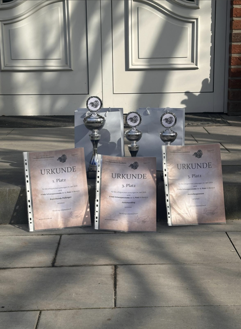 Friede Schweppenstedde erreichte auf Landesebene den 1. Platz mit über 600 Punkten. In der Ausstellung belegte sie den 3. Platz und im Juniorhandling ebenfalls einen hervorragenden 3. Platz.